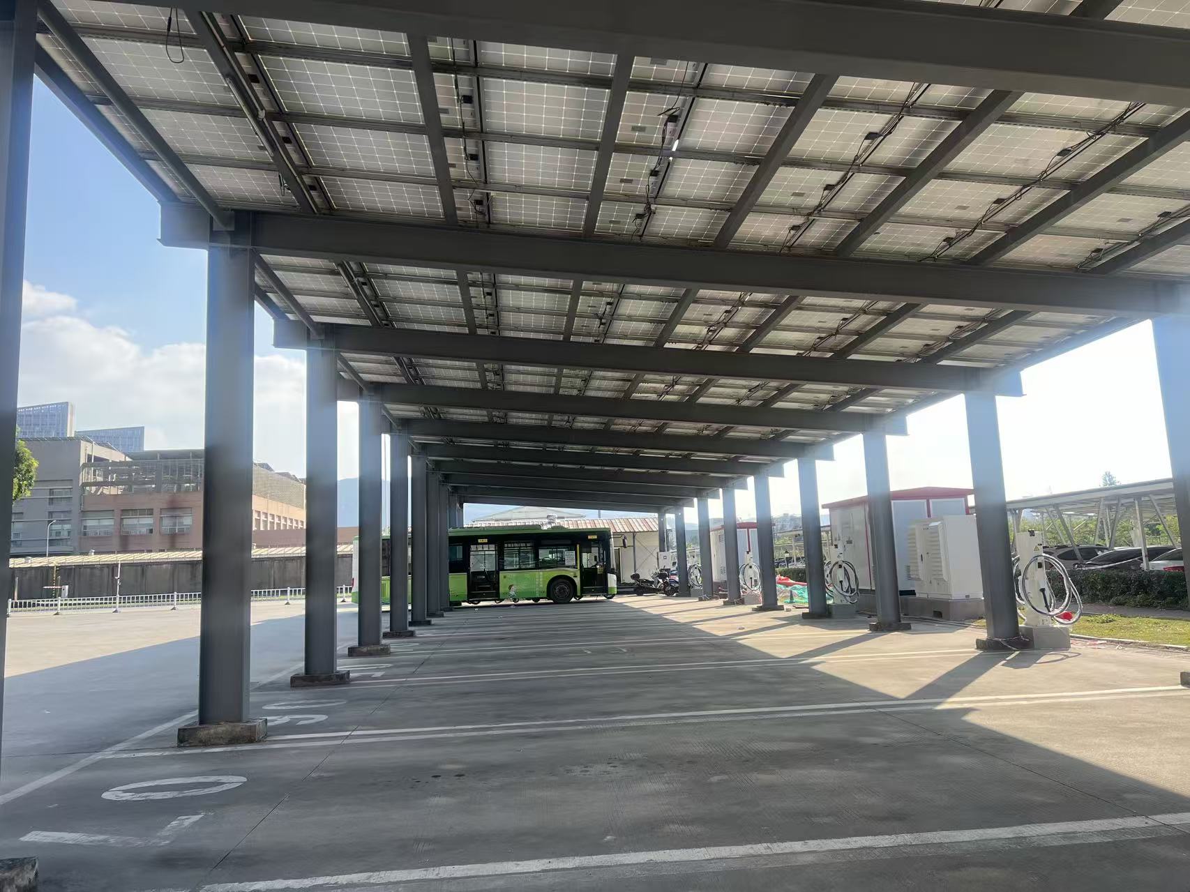 Индустријско постројење: Кров користи БИПВ уместо традиционалних челичних плочица у боји, који има и водоотпорне и топлотне изолационе функције, као и самогенерисање електричне енергије.
